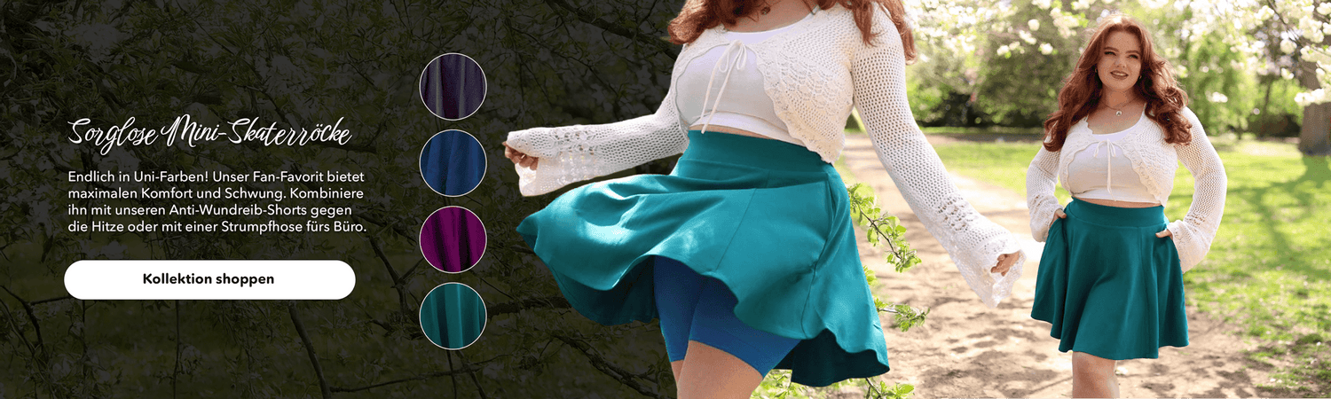 Wir wissen, wie schwer es ist, lässige Röcke in den Größen 32 bis 66 zu finden, die wirklich passen. Du willst eine tolle Form und ein Material, das sich einfach gut auf der Haut anfühlt. Genau deshalb haben wir unsere unbeschwerten Mini-Skaterröcke entworfen.