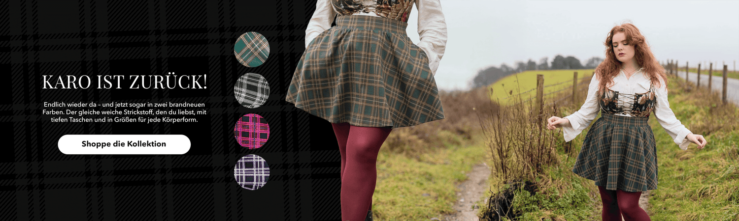 Das ist der klassische Tartan-Look, aber ganz ohne kratzige Wolle. Wir stricken diese Röcke aus unserem weichen, dehnbaren Jacquard-Stoff, der perfekt fällt und sich super soft auf der Haut anfühlt. Egal, ob du dich für den High-Waist-Mini oder den knielangen Regular entscheidest – du bekommst tiefe Taschen und unseren unverkennbaren Anti-Roll-Bund.