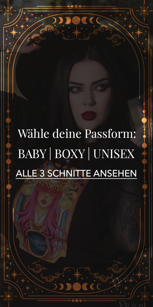 Finde deine Arkana in unseren superweichen Bio-Baumwoll-T-Shirts: Wähle Hoffnung mit dem The Star Unisex T-Shirt, oder klassischen Komfort mit dem oversize Judgement Unisex Tee. Bei den neuen Silhouetten kannst du dich für Positivität entscheiden mit dem The Sun Baby Tee (ein figurbetonter, verkürzter Schnitt), oder deine Intuition erkunden mit dem The Moon Baby Tee. Wenn dich die neue, verkürzte Boxy-Form anzieht, wähle Mysterium mit der High Priestess oder tanze in den Schatten mit den The Devil Boxy Tees.