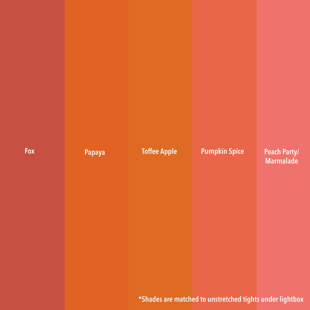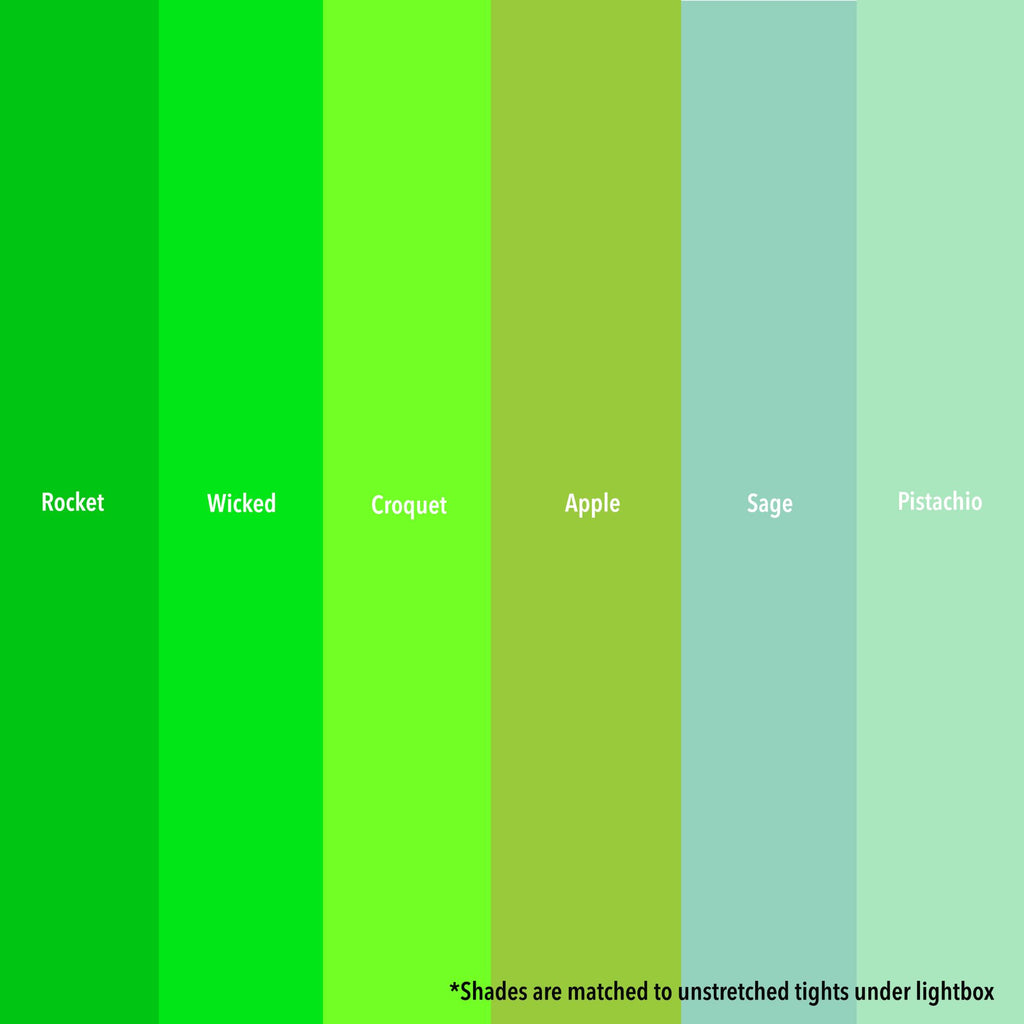 Dies sind alle epischen Farben von Snag. Es gibt nebeneinander liegende Farbfelder, die mit ungestreckten Strumpfhosen in einer Lichtbox abgestimmt sind.