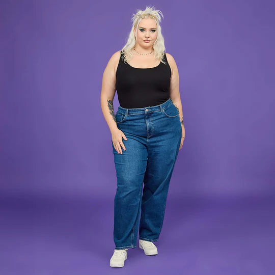 Hier sind sie also! Unsere allererste Jeans, mit Liebe entworfen, mit Sorgfalt gefertigt und passend für jeden Körper. Wir haben jedes Detail optimiert, vom nachhaltigen Stoff bis zum bequemen Etikett, denn wir glauben, dass jeder sich in seiner Jeans fantastisch fühlen sollte.