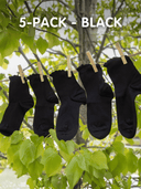 Aber diese Socken sehen nicht nur gut aus – sie sind so designt, dass sie perfekt sitzen und nicht verrutschen. Der gewellte Stretch-Bund dehnt sich bequem über unser gesamtes Größenspektrum aus und schmiegt sich sanft an, ohne einzuschneiden, zu rollen oder die Durchblutung zu stören. Es sind echte Socken (keine dünnen Nylonsöckchen), also gibt es kein Rutschen, kein Ausleiern und keine Abdrücke am Knöchel – selbst am Ende eines langen Tages.