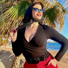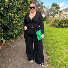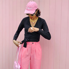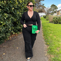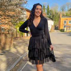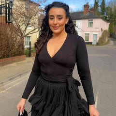Bluzka z długim rękawem i kopertowym dekoltem to uniwersalny element garderoby, o którym nie wiedziałaś, że go potrzebujesz. Ta sukienka w klasycznej czerni jest inspirowana naszą popularną sukienką kopertową, ale została zinterpretowana na nowo — idealnie nadaje się do noszenia jako warstwa wierzchnia lub samodzielny element garderoby.