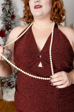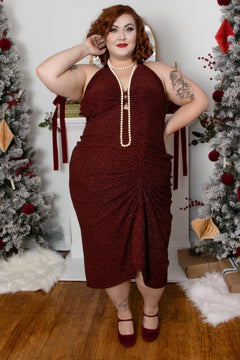 Poznaj nową gwiazdę sezonu imprezowego: sukienkę Snag Lurex z dekoltem typu halter w kolorze bordowym. Ta oszałamiająca sukienka jest całkowicie wygodna, a jednocześnie niesamowicie efektowna. Ma supermiękkie, kontrastowe wiązania z materiału, które można zawiązać wokół szyi, dzięki czemu idealnie dopasujesz ją do sylwetki, nie wrzynając się w ciało — możesz więc tańczyć całą noc, nie martwiąc się o nic.