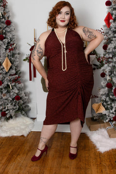 Sukienka z lureksu z dekoltem halter - Bordeaux