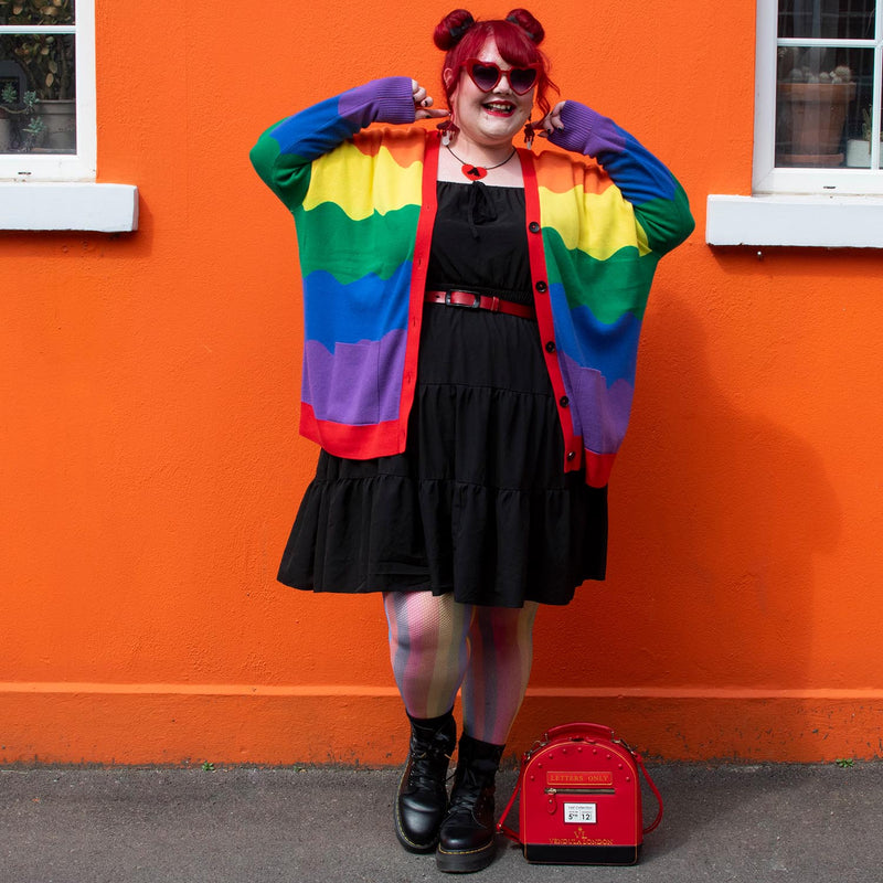 Ein Regenbogen in Form einer Strickjacke – und ja, sie macht genau so viel gute Laune, wie es sich anhört. Unser Rainbeaux Cardigan besteht aus einer weichen und kuscheligen Baumwollmischung, die sich wie eine warme Umarmung anfühlt. Mit dem klassischen V-Ausschnitt, der Knopfleiste vorne und zwei echten aufgesetzten Taschen bietet sie alle praktischen Details, die du brauchst, während die leuchtenden Streifen für den Spaßfaktor sorgen.