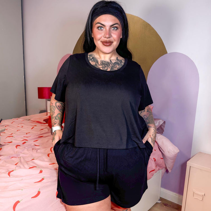 Viskose T-Shirt mit U-Ausschnitt - Schwarz