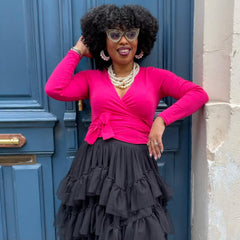 Überdressed und unbeirrt. Das ist das Top, das jedes Outfit komplett macht. Selbstbewusst, schmeichelhaft und mit genau der richtigen Portion Mut. Das Wickeldesign zaubert diese definierte Silhouette, während der Granatapfel-Ton Energie in jeden Look bringt. Es passt zum passenden Rock, es passt zu Jeans, es passt zu allem, was dein Tag so bringt.