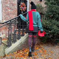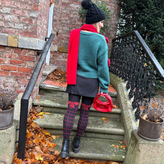 Von vorne hast du auffällige rote Schottenmuster-Strümpfe, dreh dich um und verspielte Schleifen sorgen für einen Hauch von festlicher Persönlichkeit, während sie stilvoll, tragbar und perfekt für jede Feier bleiben. Egal, ob du zu einer Weihnachtsfeier gehst, mit Freunden Glühwein schlürfst oder einfach ein bisschen mehr sexy Spaß in deinen Tag bringst, diese Strumpfhose ist perfekt für die Saison. Gift Wrapped zeigt jedes Mal einen überraschenden Hingucker in Form von festlichen Schleifen oben an deinen Oberschenkeln, wenn du dich bückst, um ein Geschenk unter dem Baum hervorzuholen oder den Eierlikör einzugießen. Hergestellt mit der gleichen kuscheligen Weichheit und Dehnbarkeit wie unsere meistverkaufte schwarze 80 DEN Strumpfhose, schmiegt sich dieses Modell bequem an deine Kurven an und bleibt den ganzen Tag sitzen. Der hohe Bund sitzt glatt, ohne zu rollen oder einzuschneiden, und der atmungsaktive Baumwollzwickel hält dich frisch – von morgendlichem Schabernack bis zum Tanzen um Mitternacht. Warm, lustig und sagenhaft festlich – diese Strumpfhose ist für die schönsten Momente der Saison gemacht.