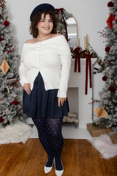 Lerne Sweet Spot kennen, die perfekte Mischung aus süß und edel für die Festtage. Diese wunderschöne marineblaue 80 DEN Strumpfhose ist von oben bis unten mit strahlend weißen Pünktchen übersät und kreiert so ein zeitloses Muster, das immer ein Lächeln hervorzaubert. Egal, ob du dich für eine Weihnachtsfeier herausputzt oder deinem alltäglichen Winterlook ein bisschen Spaß verleihst, Sweet Spot liefert sofortigen Charme mit passendem kuscheligem Komfort.