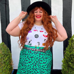 Der Druck befindet sich auf unserer frischen, weißen LENZING™ ECOVERO™ Viskose-Basis, wodurch die Farben richtig strahlen. Es ist weich, dehnbar und perfekt, um gute Laune zu verbreiten, wo immer du hingehst. Trag es mit deinen liebsten bunten Strumpfhosen für das ultimative Gute-Laune-Outfit.