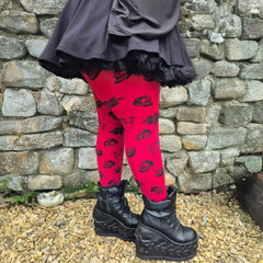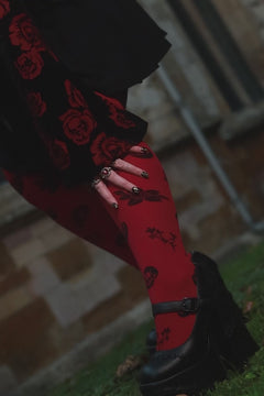 80 Denier Strumpfhosen - Danu Skull Flower - Blood Red