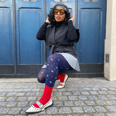 Dinky Horses sind unsere 80-Denier-Statement-Tights für alle, die mit Schwung nach vorne blicken. Auf einer tiefen, mitternachtsblauen Basis namens „Ocean Depths“ galoppieren verspielte kleine Pferde - eine fröhliche Hommage an das Jahr des Feuerpferdes.