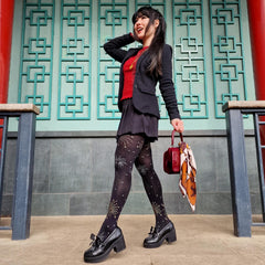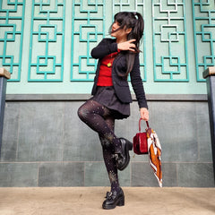 Bringen Sie die Nacht mit jedem Schritt zum Leuchten. Unsere 80-Denier-Strumpfhose „Glitzer-Feuerwerk“ ist ein echtes Highlight: Funkelnde silberne und goldene Feuerwerksexplosionen sowie verstreute Sterne tanzen auf einer tiefschwarzen Basis. Selbstbewusst, verspielt und wie gemacht zum Strahlen – diese Strumpfhose verwandelt jede Bewegung in einen besonderen Moment und jedes Outfit in einen echten Hingucker.