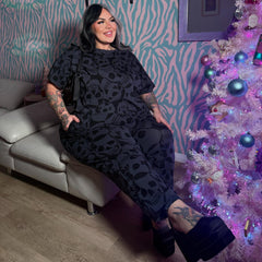 Hunderte von grinsenden Totenköpfen wirbeln über eine tintenschwarze Basis und verbreiten die passende stimmungsvolle Vampir-Höhlen-Atmosphäre. Egal, ob Ihr Herz Dracula, Lestat oder etwas noch Älterem gehört, das ist die Hose, zu der Sie in jeder stürmischen Nacht mit einem Horror-Roman oder einem Mitternachts-Filmmarathon greifen werden.