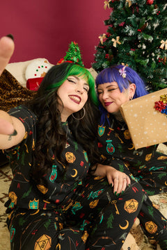 Unser TTRPG Pyjama Boxy-Tee macht die Schlafenszeit zu Ihrer ultimativen Kampagne. Wer liebt Dungeons & Dragons nicht? Wähle deine Waffe (Streitaxt, Armbrust oder Dolch), nimm einen Schluck Heiltrank für einen erholsamen Schlummer oder unseren Lieblingstrank der Gasgestalt, um ins Traumland davonzuschweben.