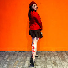 Süß, markant und voller positiver Energie: Die „Paper Cut“-Strumpfhose in der Farbe „Builder’s Tea“ bringt Magie in Ihren Alltag. ✨ Auf einer zarten, 30-Denier-Basis in unserem klassischen Vanille-Hautton zeigt diese Mixed-Denier-Strumpfhose ein auffälliges, glücksbringendes rotes Design, das die Rückseite des Beins hochläuft. Von vorne subtil, von hinten unvergesslich!