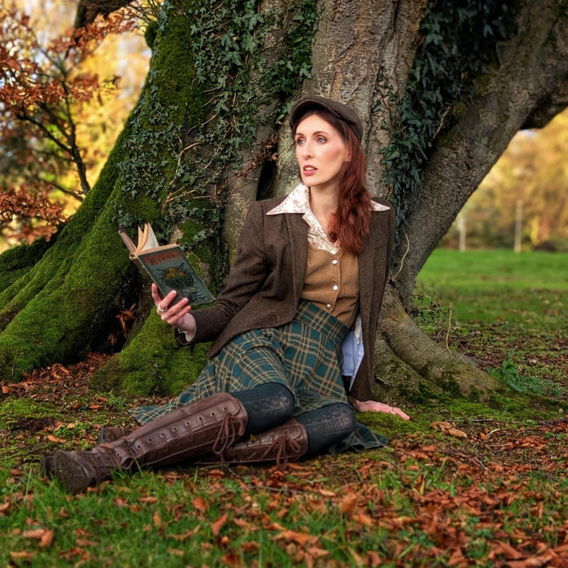 Die Glenfern-Farbgebung besticht durch eine tief dunkelgrüne Basis, verwebt mit braunem und hellgrünem Karomuster – inspiriert von moosigen Pfaden, uralten Bäumen und frischer Waldluft. Kombiniere ihn rustikal mit klobigen Boots und Strick, setze auf volle Cottagecore-Romantik mit Strumpfhosen und Cardigans oder kreiere einen mystischen Dark-Academia-Look mit schwarzem Kontrast.