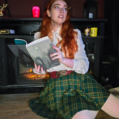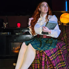 Die Glenfern-Farbgebung besticht durch eine tief waldgrüne Basis, verwebt mit braunem und hellgrünem Schottenkaro – inspiriert von moosigen Pfaden, farnbedeckten Lichtungen und Cottagecore-Träumen. Kombiniere ihn rustikal mit klobigen Boots und Strumpfhosen, trage ihn mit weichem Strick für echte Storybook-Vibes oder verpasse ihm mit schwarzen Schichten einen mystischen Dark-Academia-Touch.