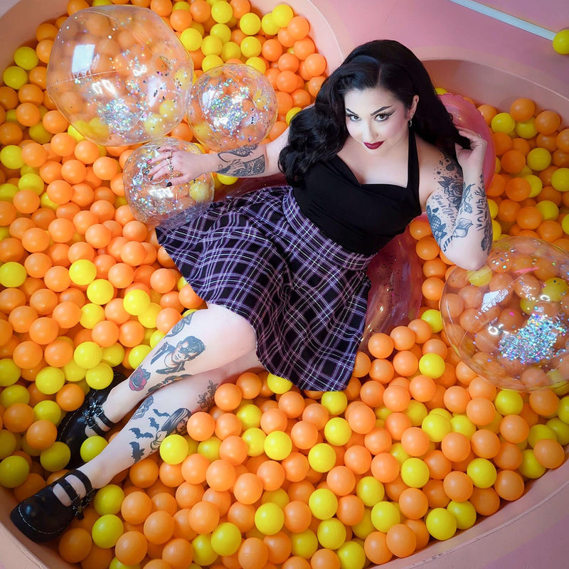 Das Moorland-Karo kombiniert eine tiefschwarze Basis mit violettem und weißem Tartan für einen Look, der in Sekunden von traditionell bis zum Grunge-Chaos wechseln kann. Kombiniere ihn mit klobigen Boots und einem schwarzen Mesh-Top für volle Gothic-Energie oder style ihn mit einem klassischen weißen Hemd für entspannte Preppy-Vibes. Egal wie du ihn trägst, dieser Rock bringt das Drama – auf die absolut beste Art.