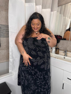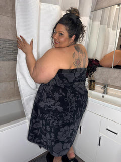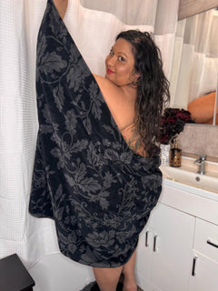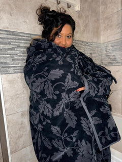 Perfekt direkt nach der Dusche, nach einem Bad oder wenn Sie einen kompletten Verwöhnabend mit Kerzen und allem Drum und Dran planen. 100 % Baumwollgarn bedeutet, dass es sanft zur empfindlichsten Haut, atmungsaktiv und auf Langlebigkeit ausgelegt ist. Gönnen Sie sich etwas Dunkles, etwas Florales und etwas durch und durch Fabelhaftes.