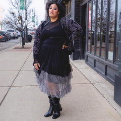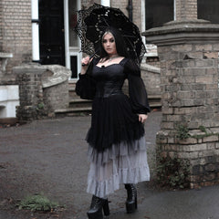 Style ihn mit einem Korsett für den großen Gothic-Auftritt oder kombiniere ihn mit einem weißen T-Shirt und Boots, um dich beim Coffee-Run wie eine dunkle Märchenprinzessin zu fühlen. Dieser Rock versprüht pure Main Character Energy. Wir fertigen unsere Kleidung nach höchsten ethischen Standards, damit du weißt, dass dein Style niemals Kompromisse bei Qualität oder Inklusivität eingeht.