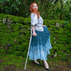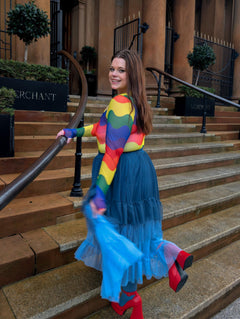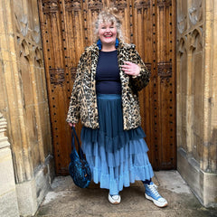 Drei vom Ozean geküsste Blautöne, ein absolut traumhafter Rock. Der Ombré Mesh-Midaxi-Rock in Bone China fließt von Ice Blast, einem frostigen Babyblau am Saum, über Denim, einem sanften, verblichenen Blau – inspiriert von deiner Lieblingsjeans – bis hin zu Bone China, einem tiefen Blau mit einem Hauch von Petrol, das an die tiefen Wasserfarben von Delfter Porzellan erinnert.