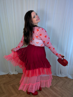 Leicht, luftig und voller Schwung – dieser Rock ist so entworfen, dass er sich mit dir bewegt und jeden Schritt in einen besonderen Moment verwandelt. Oben gefüttert für ein sicheres Gefühl und hohen Komfort, geht er in transparentes, mehrlagiges Mesh über – für einen verspielten Look, der kokett wirkt, ohne jemals aufdringlich zu sein.