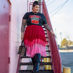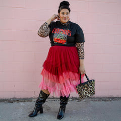 Style ihn mit einem passenden Mesh-Top für das volle Farb-Chaos, mit kuscheligem Strick und Sneakern für die Magie des Alltags oder kombiniere ihn mit Heels, um durch das Leben zu tanzen. Dieser Rock ist für alle, die Kleidung lieben, die genau das ausdrückt, was sie im Inneren fühlen.