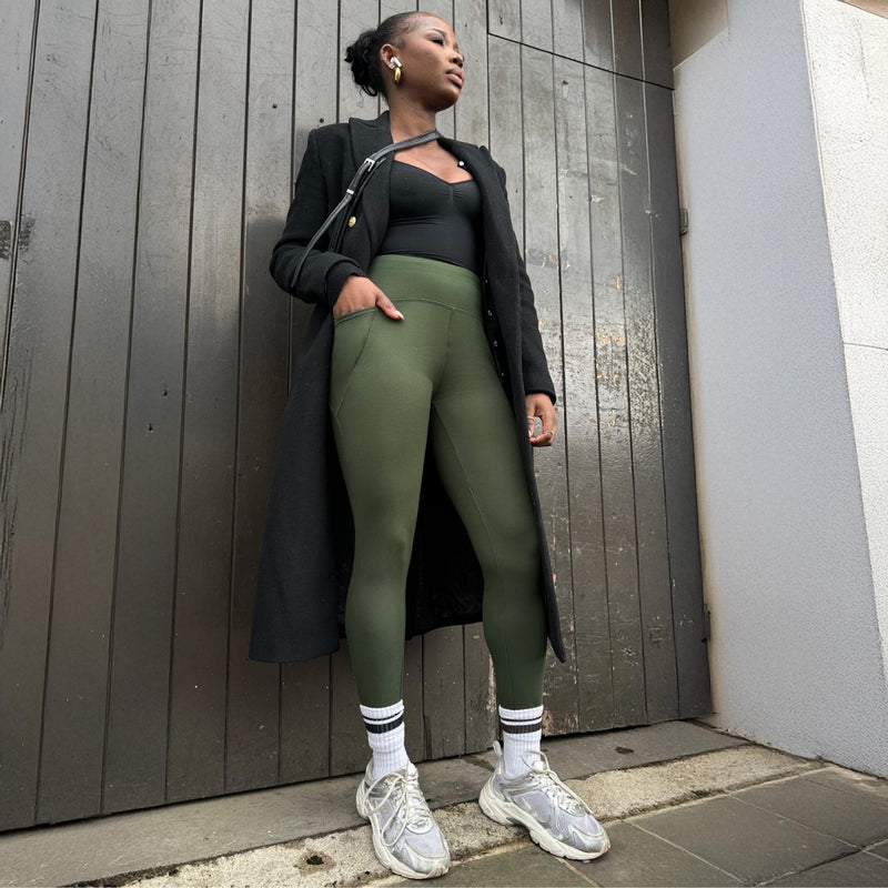 Utvalda av dig var V2-leggingsen under utveckling i ett år. Alla fördelar med originalen: helt ogenomskinlig och knäböjssäker (inga underkläder syns igenom), superbekvämt, tjockt, hållbart Ponte Roma-tyg. Men med en helt ny ficka, superelastiskt midjeband och minskad pilling.